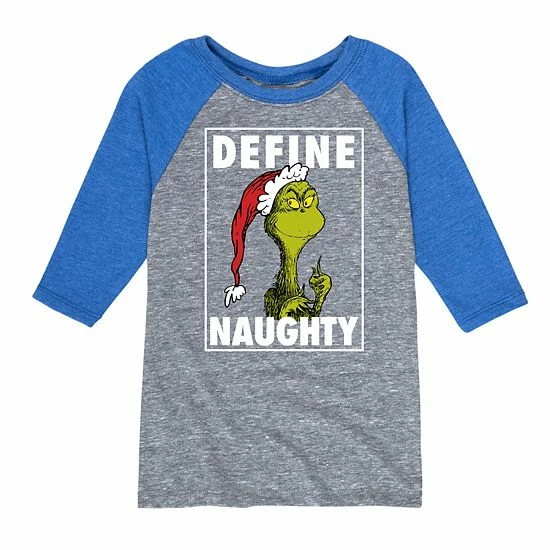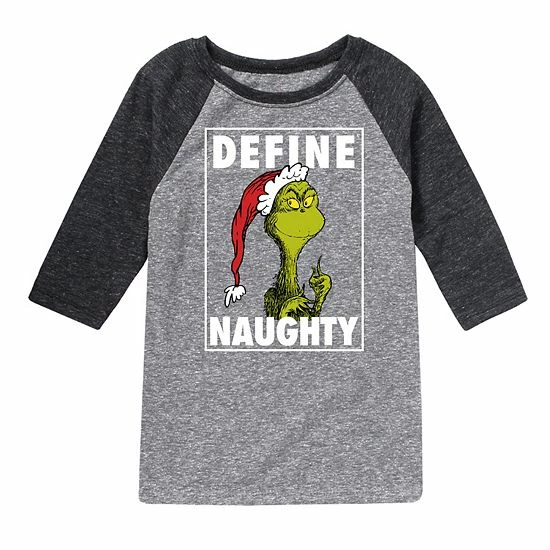 His heart will grow three sizes when he wears this Boys 8-20 Dr. Seuss The Grinch Naughty Raglan Graphic Tee.