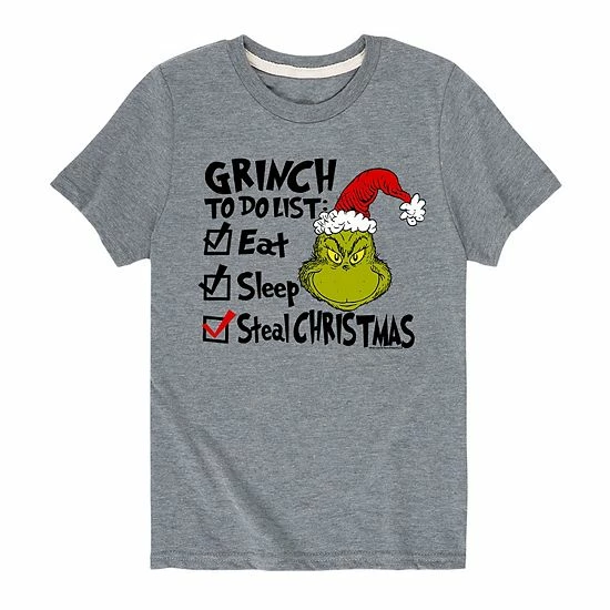 He’ll love his look while wearing this boys’ The Grinch Who Stole Christmas graphic tee.