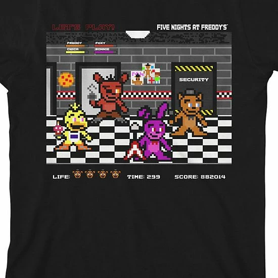 He’ll love showing off his favorite franchise and style with this boys’ Five Nights at Freddy’s Retro Gaming Graphic Tee.