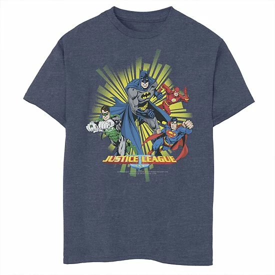He’ll love showing off his favorite look with this boys’ Justice League Character Burst Portrait Graphic Tee.