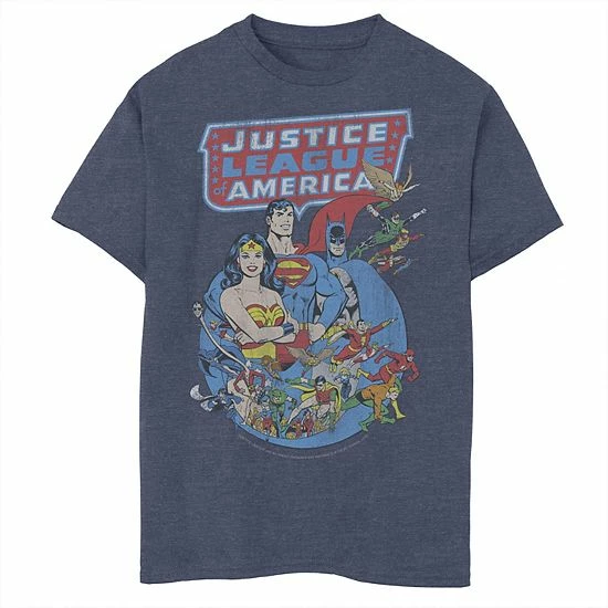 He’ll love showing off his favorite look with this boys’ Justice League Character Collage Logo Graphic Tee.