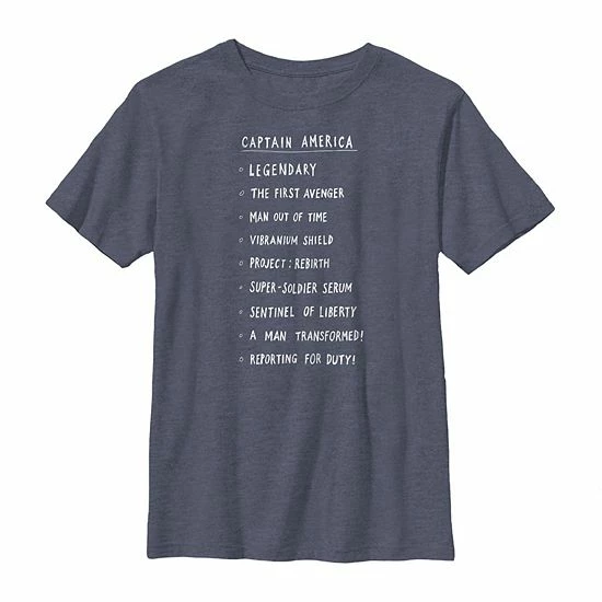 He’ll feel super in this Boys 8-20 Marvel Captain America List Graphic Tee.
