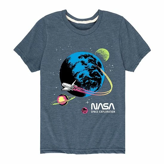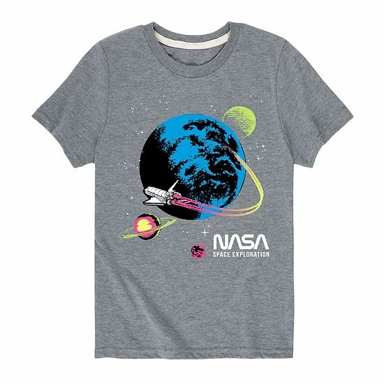 His outfit will be “Out of this World” in this boys’ NASA Flight Graphic Tee.