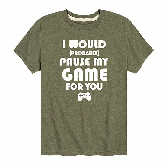 Level up his look with this funny boys’ “Pause My Game For You” tee.