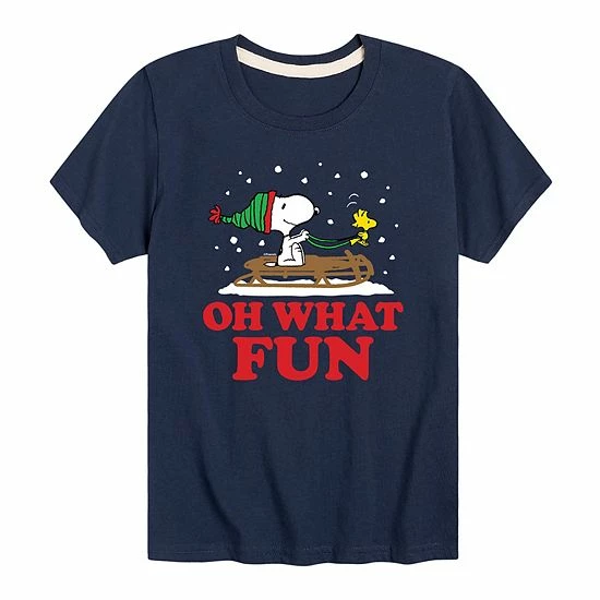 Your stylish kiddo will love the fun look of this boys’ Peanuts Oh What Fun Sledding Graphic Tee.