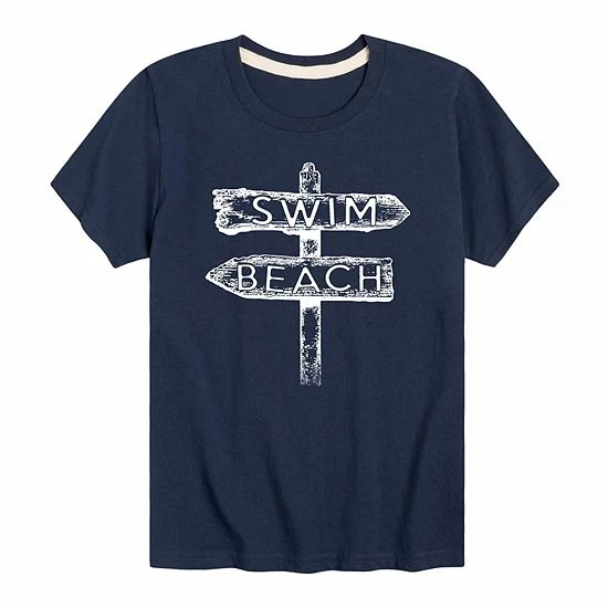 Give him a fun summer look with this Swim Beach Sign boys’ graphic tee.