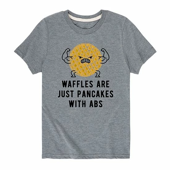 Give him a fun new look with this Waffles Are Just Pancakes With Abs boys’ graphic tee.