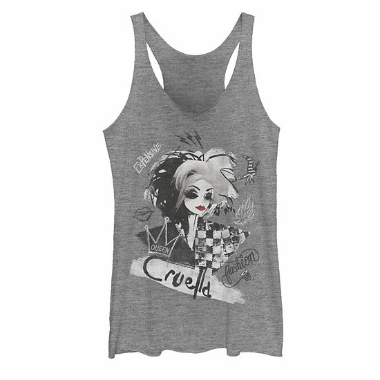 You’ll love the villainous style of this juniors’ Cruella de Vil graphic tank top. © Disney