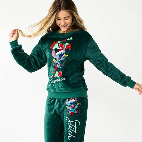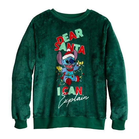 Stay cozy and warm this Christmas when you wear this adorable juniors’ Stitch sweatshirt. © Disney