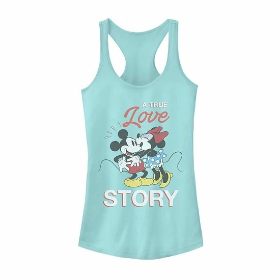 Celebrate your favorite cartoon couple with this charming juniors’ Mickey Mouse and Minnie racerback tank top.