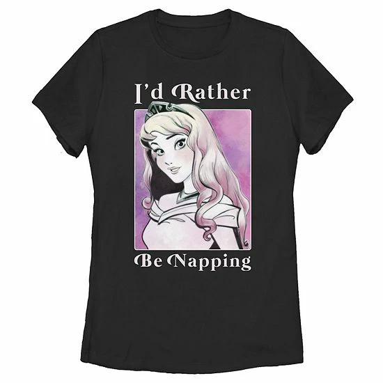 Show love for your favorite Disney movie wearing this juniors’ Sleeping Beauty “I’d Rather Be Napping” tee. © Disney