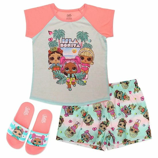 Keep her comfy in this beachy girls’ L.O.L Surprise! “Isla Bonita” pajama and flip flops set.