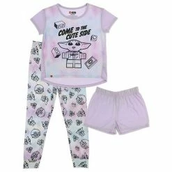 She’ll be excited to get ready for bed with the fun look of this girls’ LEGO Star Wars Grogu aka Baby Yoda Top, Shorts & Pants Pajama Set.