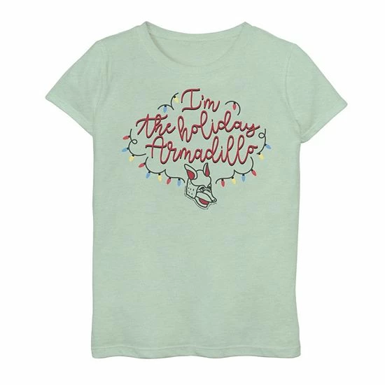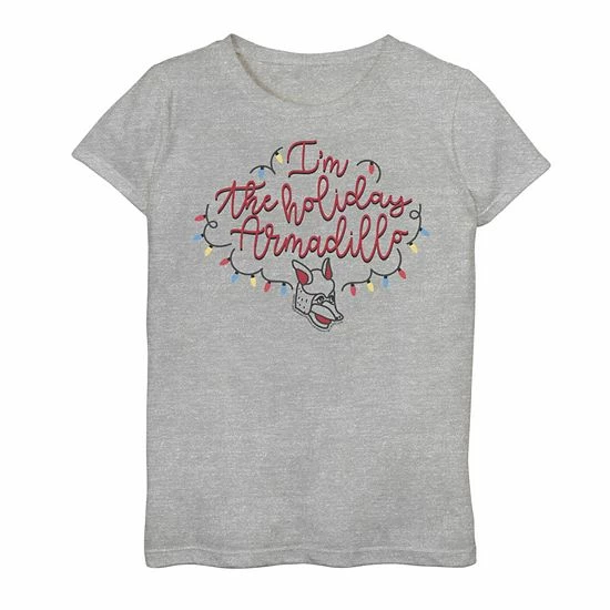 She’ll love showing off her favorites with this girls’ Friends Christmas I’m The Holiday Armadillo Graphic Tee.