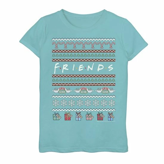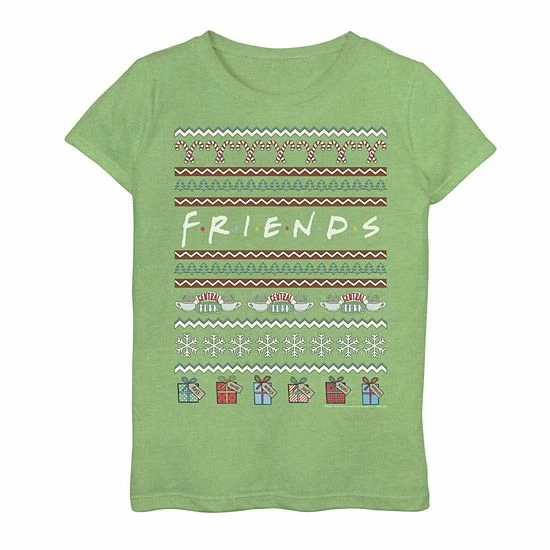 She’ll love showing off her favorites with this girls’ Friends Christmas Ugly Sweater Style Logo Graphic Tee.