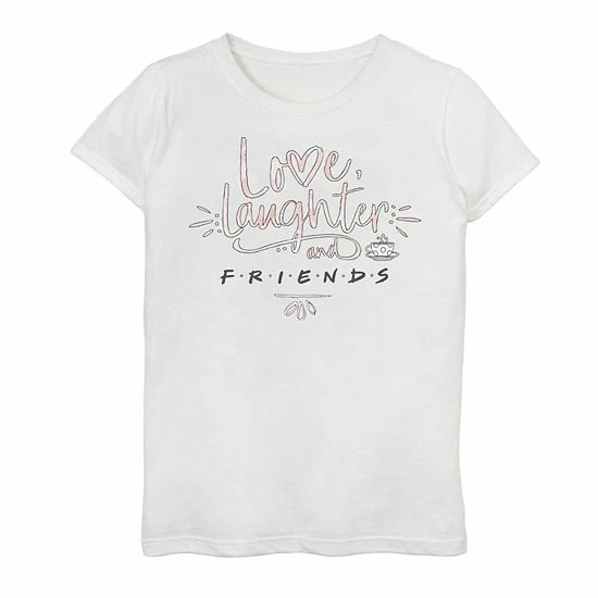 She’ll love showing off her favorites with this girls’ Friends Love & Laughter Text Graphic Tee.