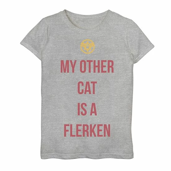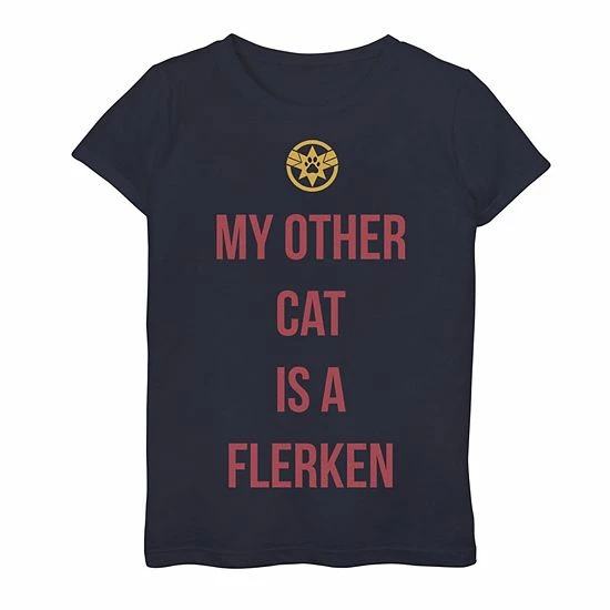 A better, super-powered, basic! This girls 7-16 Marvel Captain Marvel “my other cat is a Flerken” graphic tee is the perfect addition to any fan’s casual wardrobe.