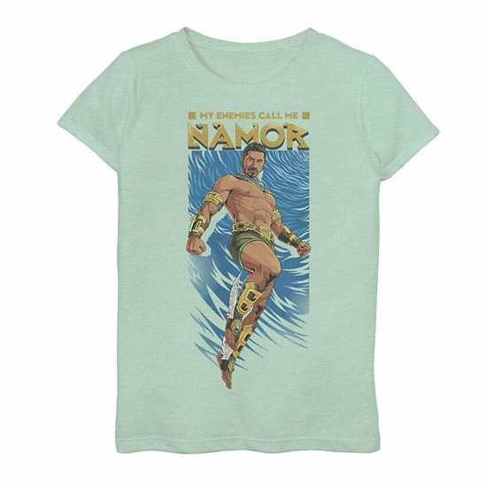 She’ll love showing off her favorite super hero with this girls’ Marvel Wakanda Forever My Enemies Call Me Namor Animated Portrait Graphic Tee.