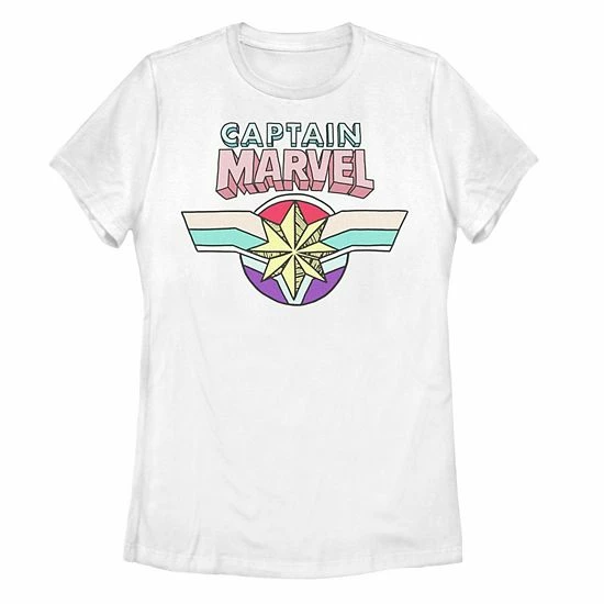 Beat the heat while staying cute in this juniors’ Captain Marvel logo tee.