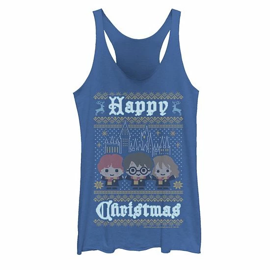 Celebrate Christmas with Harry Potter, Hermione and Ron in this fun juniors’ ugly Christmas sweater-style tank top.
