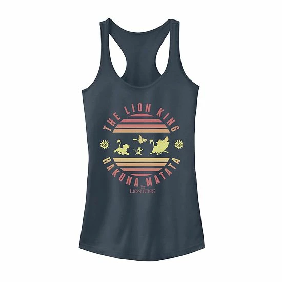 Embrace a problem-free philosophy with the Lion King Hakuna Matata Sunset Circle tank top.