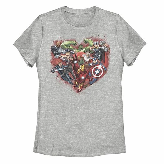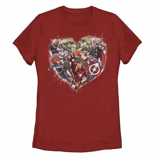 Featuring a heart-shaped collage with all your favorite Marvel Avengers, this juniors’ Valentine’s Day tee is perfect for any superhero superfan.