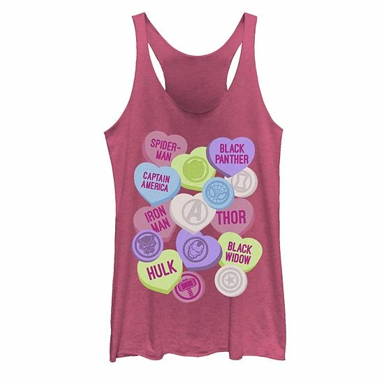 This juniors’ Marvel Valentine’s Day tank top features a sweet candy heart for each of your favorite Avengers.