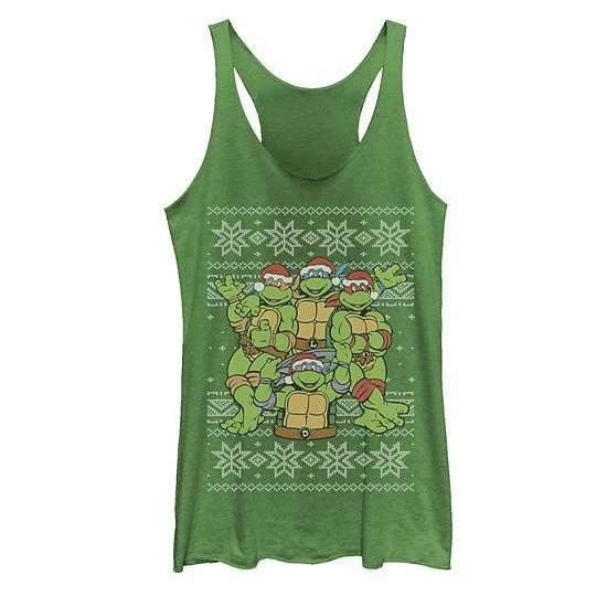 Any TMNT fan on your gift list will love the retro look of this juniors’ Christmas snowflake print graphic tank top.