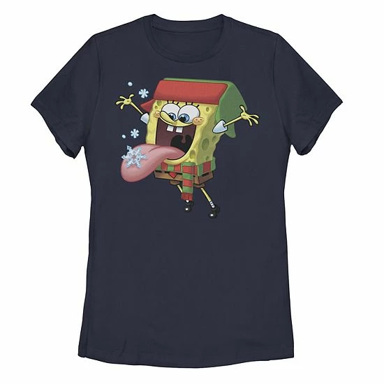 Go snowflake-catching with SpongeBob in this fun juniors’ graphic tee.