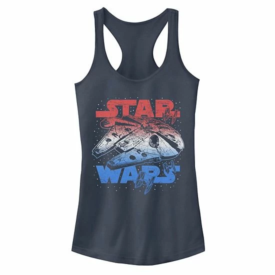 Sport your Star Wars fandom with pride wearing this patriotic red, white and blue Millenium Falcon graphic tee!