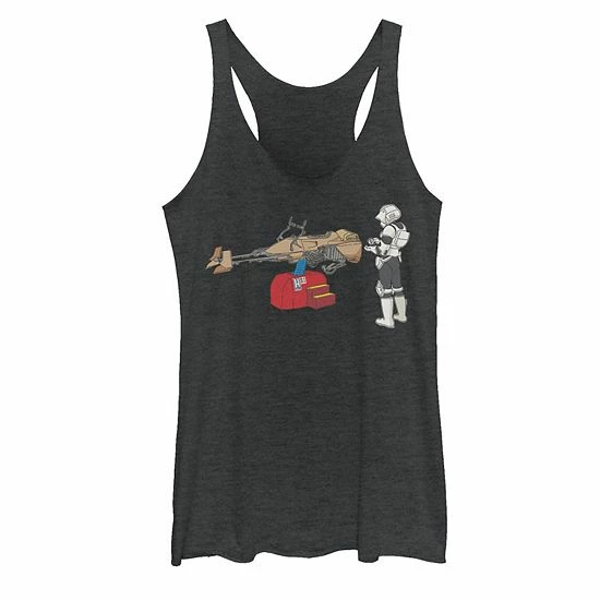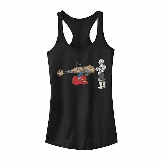 A must have for any fan, thisJuniors’ Star Wars Stormtrooper Coin Operated Speeder Bike Tank Top will be your favorite shirt in the galaxy.