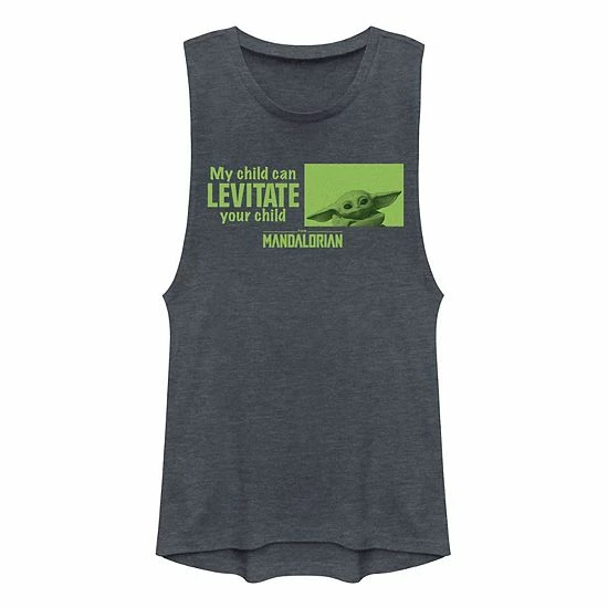 Show love for the Mandalorian wearing this cheeky juniors’ Star Wars muscle tank top.