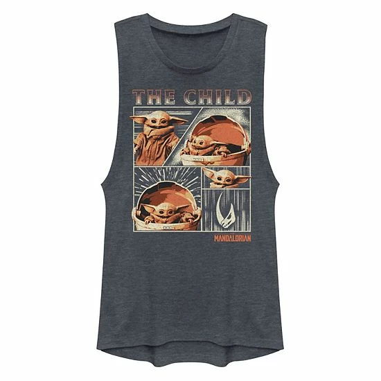 Show love for the cutest Star Wars character wearing this juniors’ Baby Yoda muscle tank top.