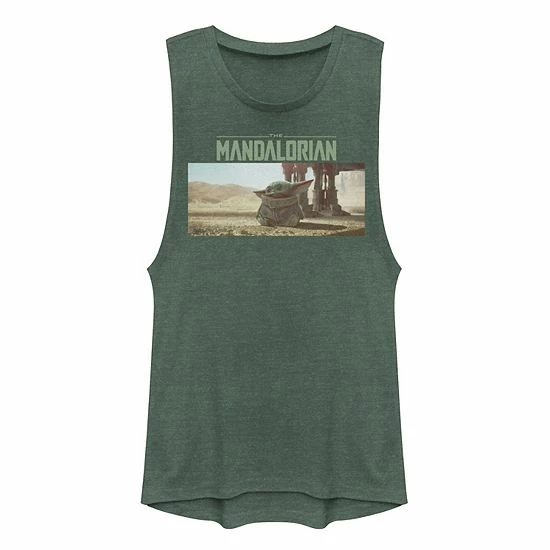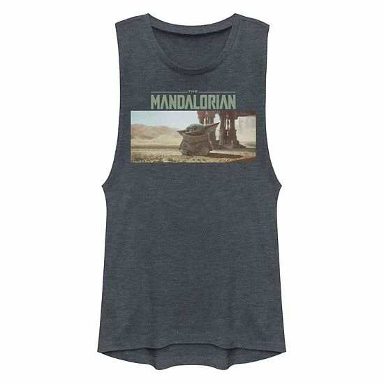 Display your Star Wars love with this Mandalorian juniors’ muscle tank top, featuring a Baby Yoda graphic.