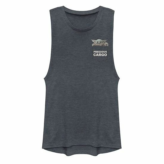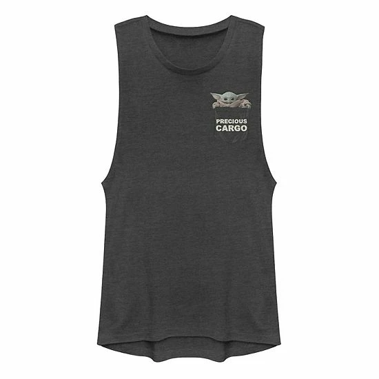 Put your precious cargo on display wearing this juniors’ Star Wars Baby Yoda muscle tank top.
