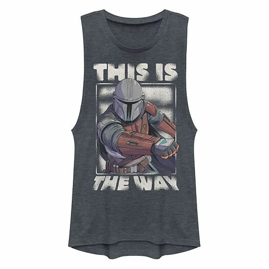 Show love for the latest Star Wars installment, featuring this juniors’ Mandalorian muscle tank top.