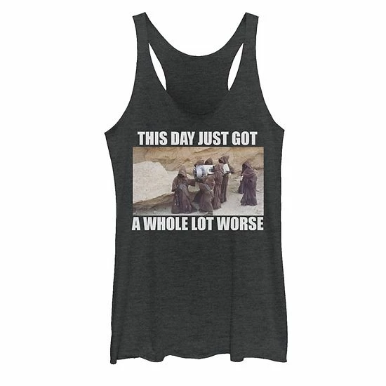 Show off your love for Star Wars with this goofy R2-D2 kidnapped by Jawas tank top.