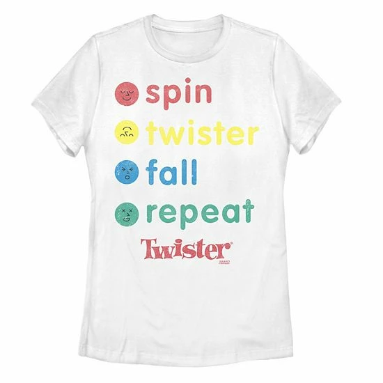 Represent your favorite game with this juniors’ Twister Spin Twister Fall Repeat graphic tee.
