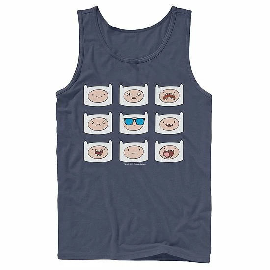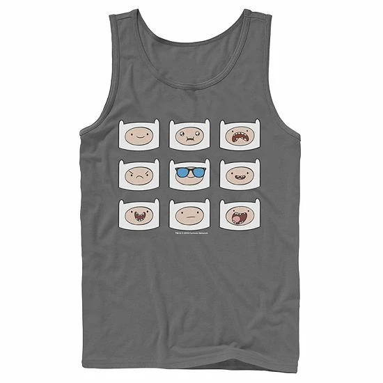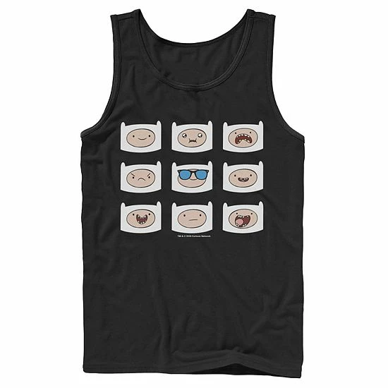 Switch up your look with this men’s Adventure Time Finn’s Many Faces Grid Tank Top.