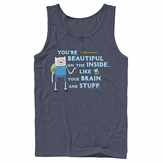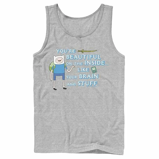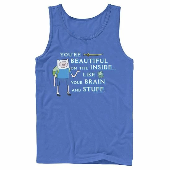 Have some fun with your wardrobe with this men’s Adventure Time Finn ‘You’re Beautiful on the Inside’ portrait tank.
