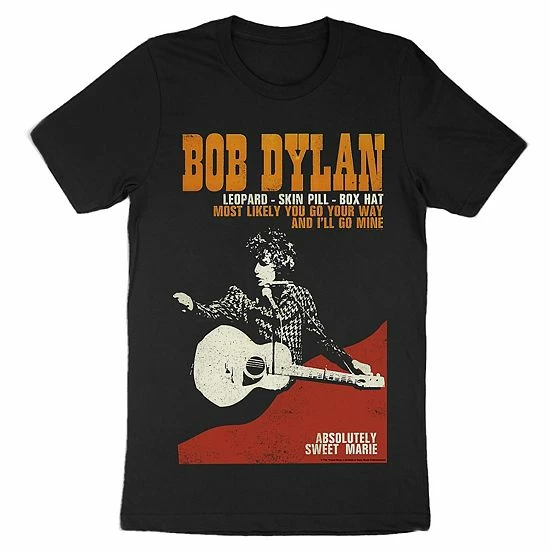You’ll rock a fun, retro look with this men’s Bob Dylan tee.