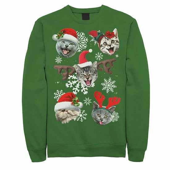 He’ll love wearing this Men’s Cats In Christmas Hats Collage Graphic Fleece Pullover.