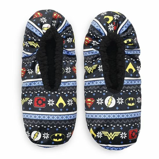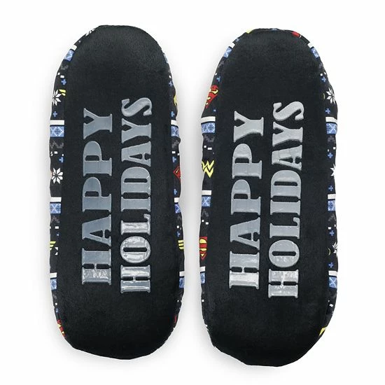 Kick your feet up with these cool and cozy men’s DC Comics “Happy Holidays” slipper socks.