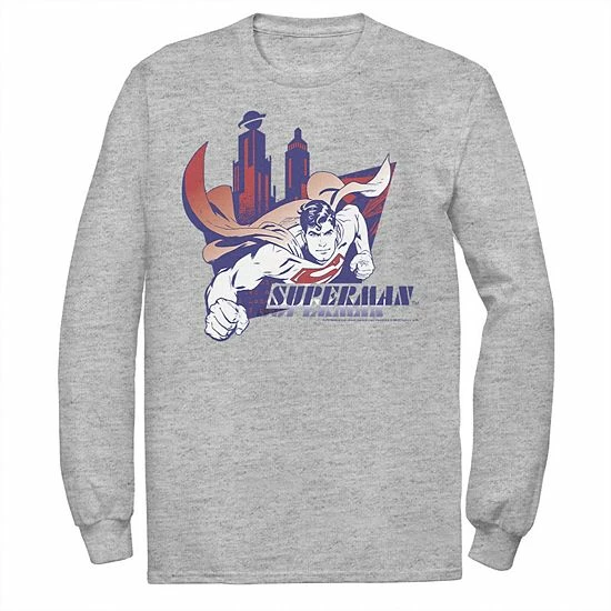 Featuring his favorite hero, he’s sure to love this Men’s DC Comics Superman Daily Planet Skyline Flying Poster Long Sleeve Graphic Tee.