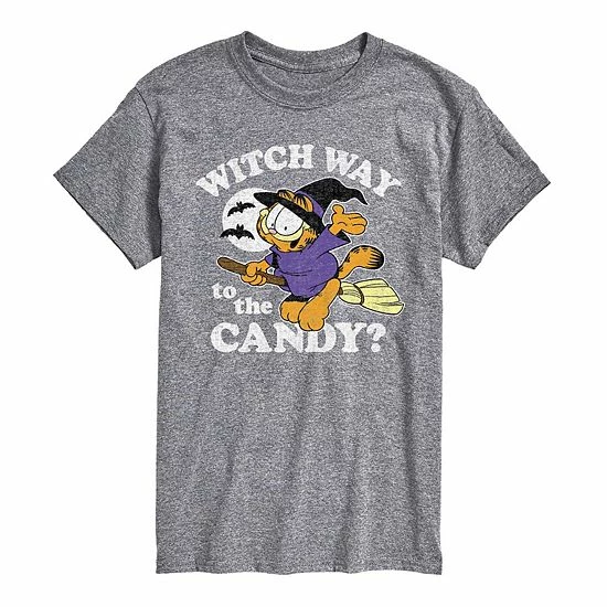 Find your way to all the candy bowls in this fun Garfield Witch Way To Candy tee.
