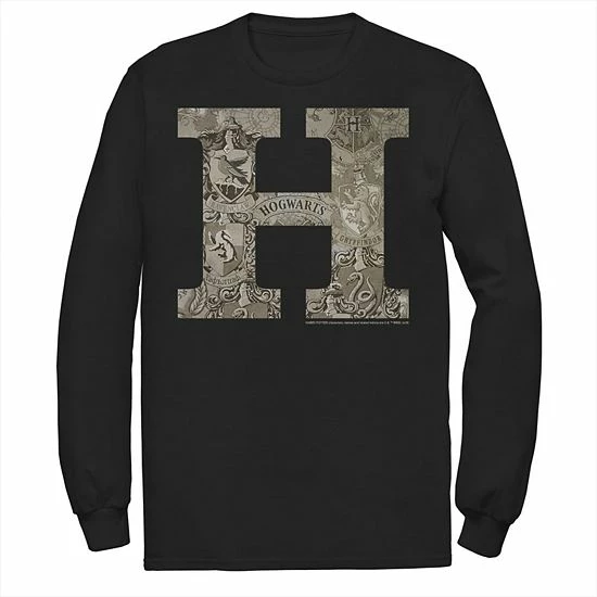 Show your love for Hogwarts with this Harry Potter H Hogwarts Crest Fill Long Sleeve Tee.
