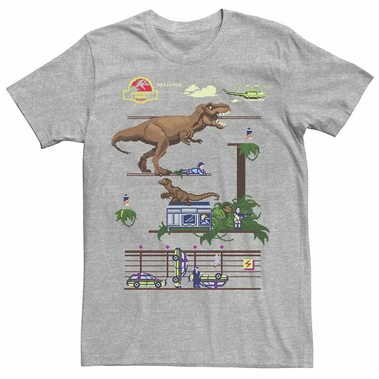 He’ll love the look of this Men’s Jurassic Park Digital Video Game Scene Graphic Tee.