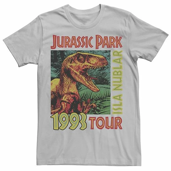 Let your cinematic style sense run wild with this men’s Jurassic Park tee.