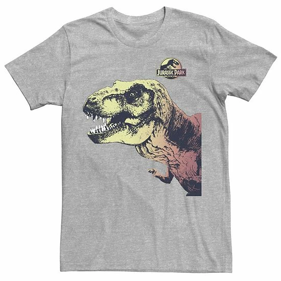 He’ll love the look of this Men’s Jurassic Park T-Rex Sunset Color Fil In Graphic Tee.