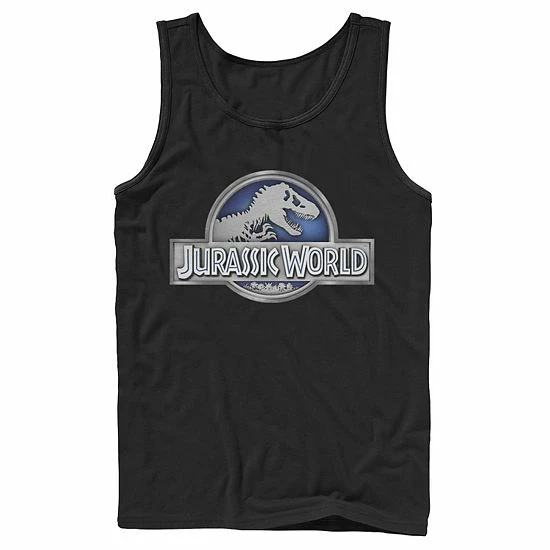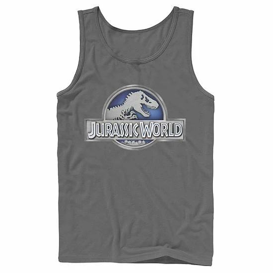 He’ll love the look of this Men’s Jurassic World Classic Metal Coin Logo Graphic Tank Top.